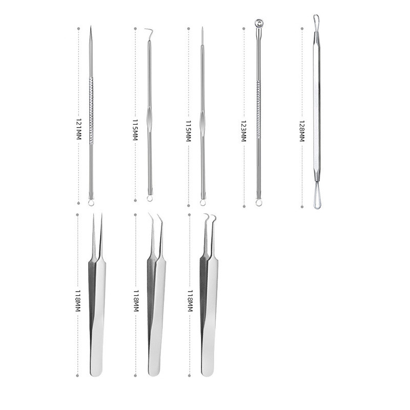 商品:粉刺針四支 + 雙頭排痘針一支 + 粉刺夾三支