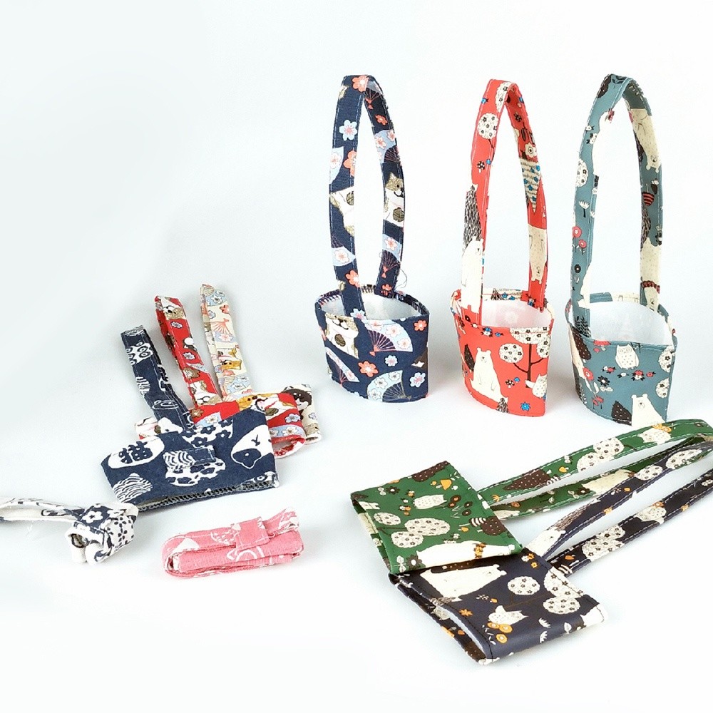 手提環保杯袋 奶茶杯 棉麻布料/防水 飲料提袋 環保杯套 防水飲料袋 手搖杯提袋 環保飲料提袋 missU