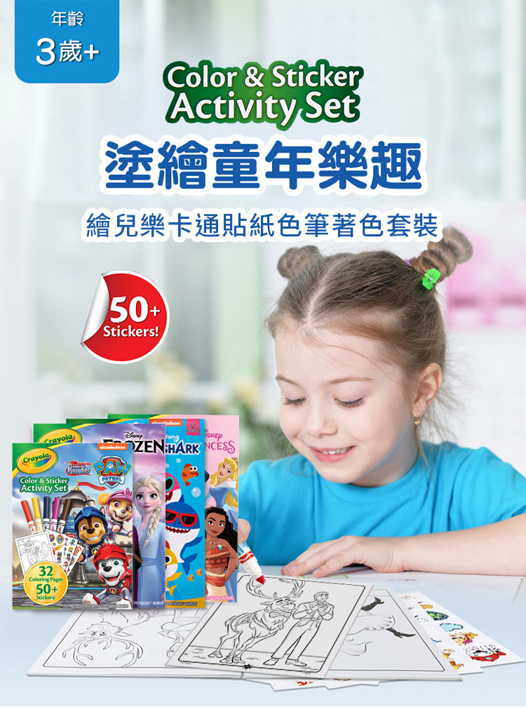 【繪兒樂】兒童貼紙色筆著色套裝系列 (冰雪奇緣/鯊魚寶寶/公主/汪汪隊立大功) 塗鴉本 著色本 繪本