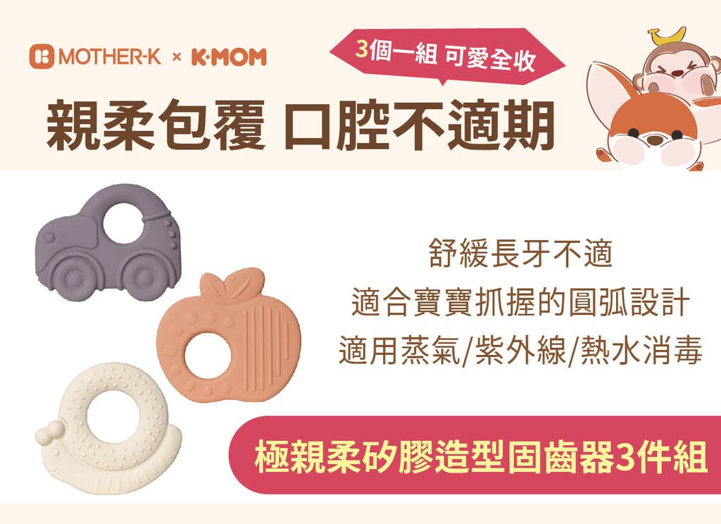 【韓國Mother-K】極親柔矽膠造型固齒器3件組 嬰幼固齒器 GT858