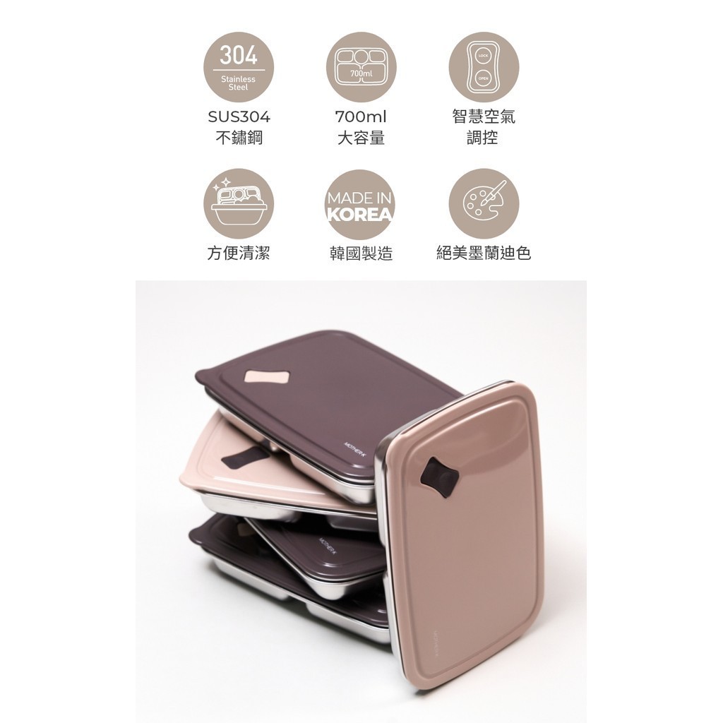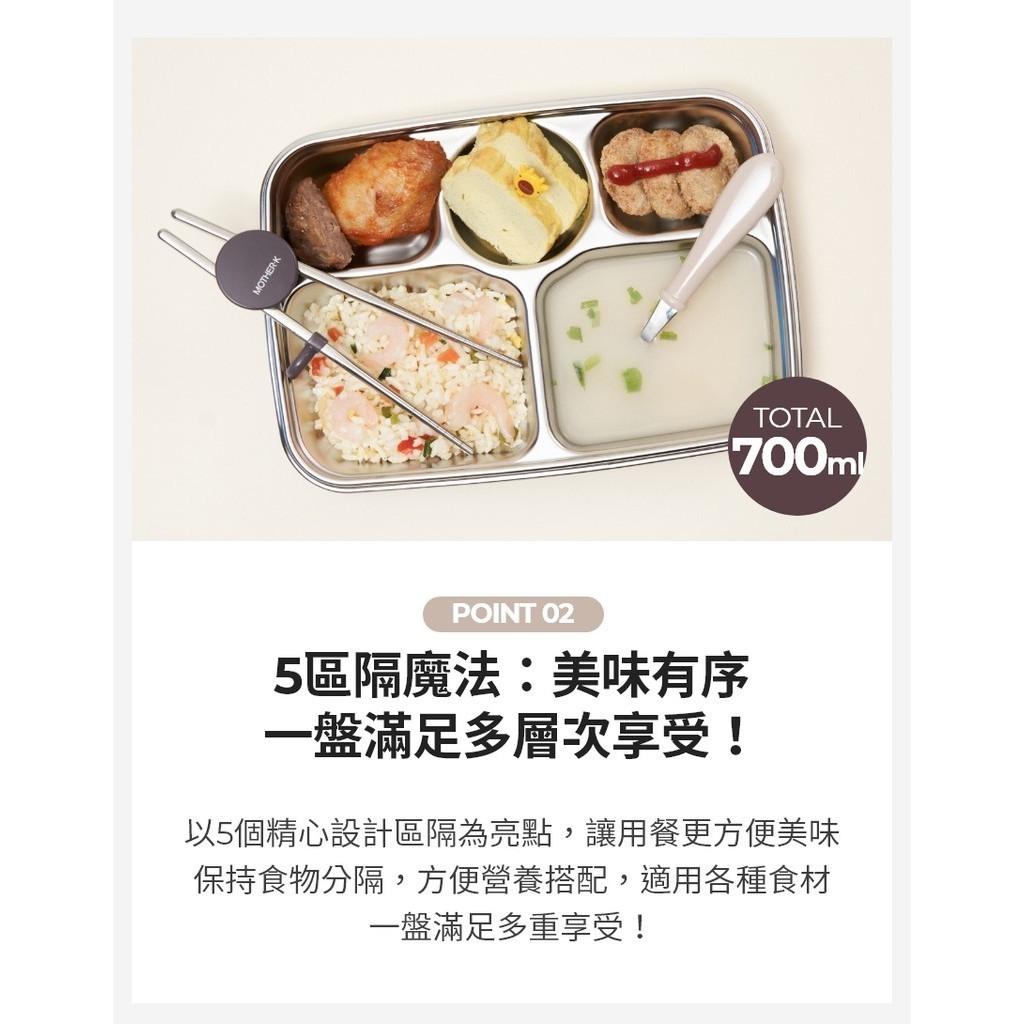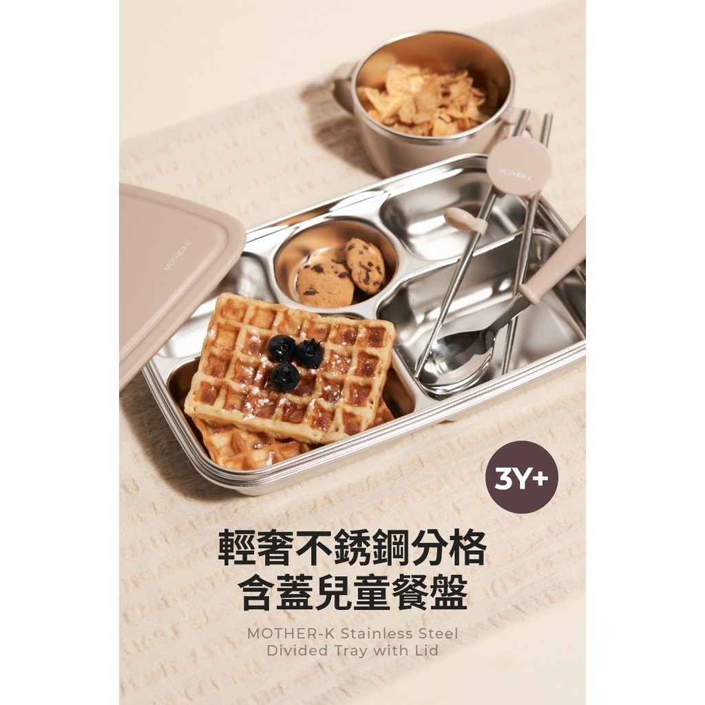 【韓國Mother-K】輕奢不鏽鋼分格含蓋兒童餐盤 3Y+ (5區隔/304不鏽鋼/韓國製造) 兒童餐具 missU