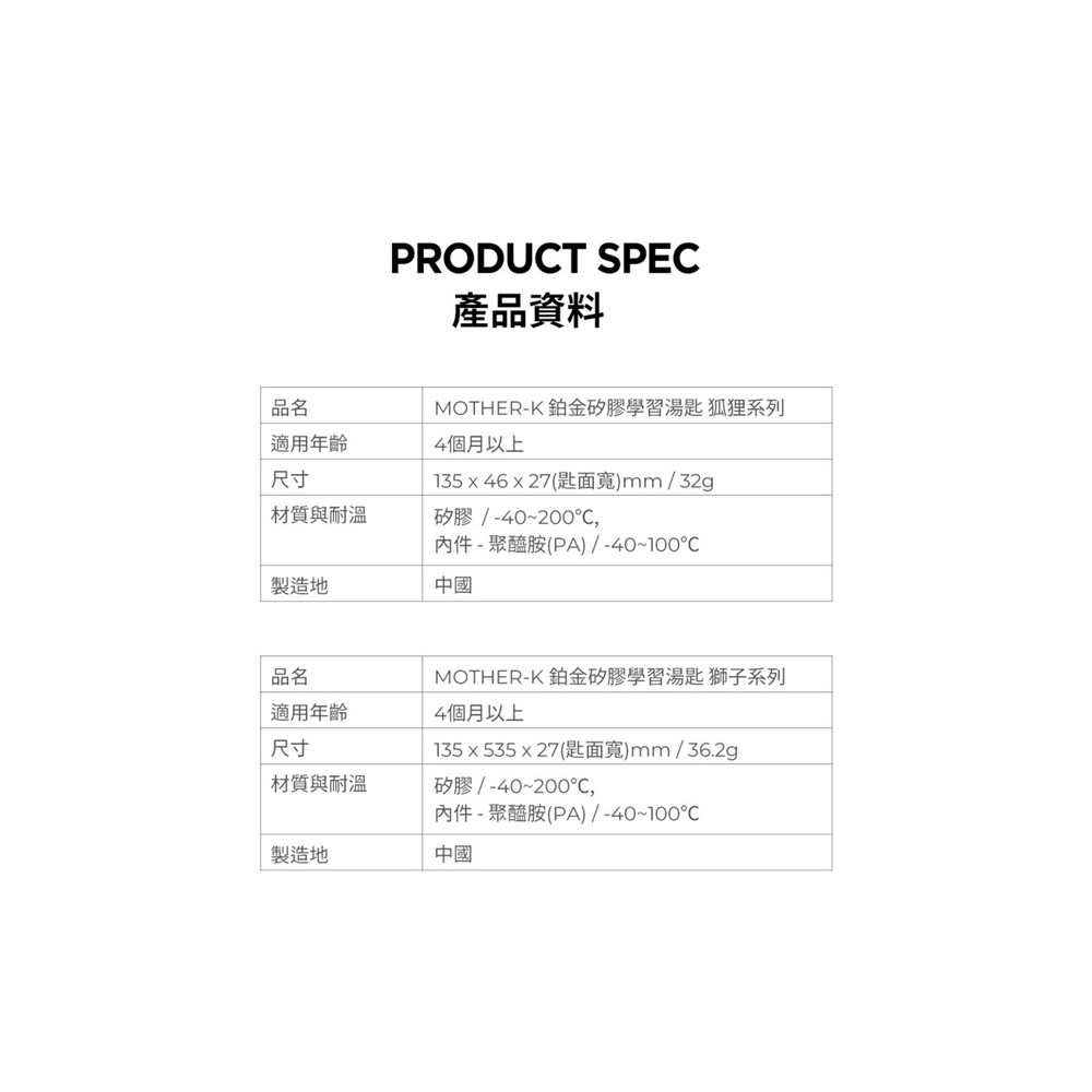 【韓國Mother-K】鉑金矽膠學習湯匙 (4m+) 學習餐具 寶寶湯匙 獅子湯匙 狐狸湯匙 missU