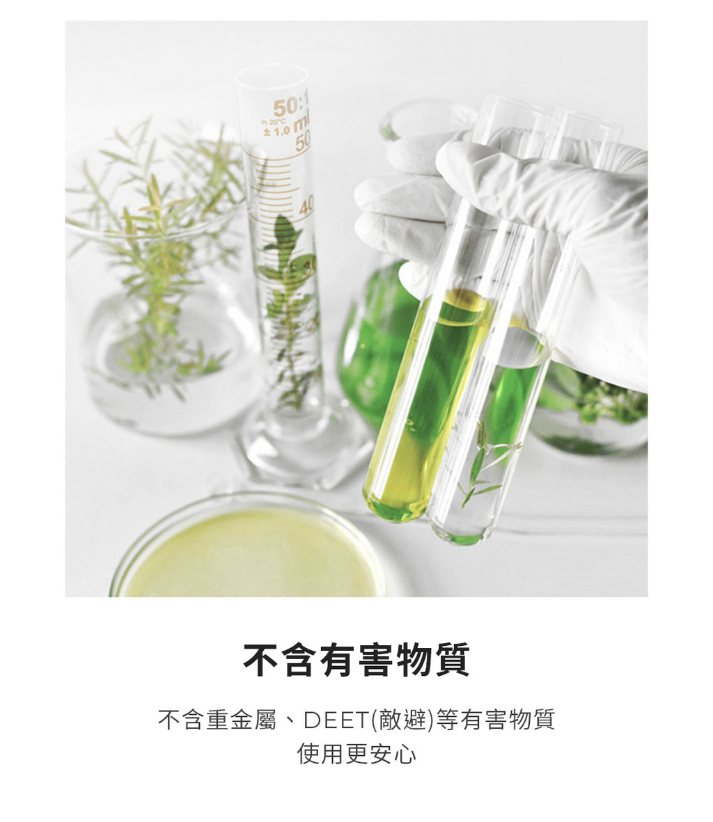 .天然精油防蚊成分,不含DEET(敵避)重金屬等有害物質