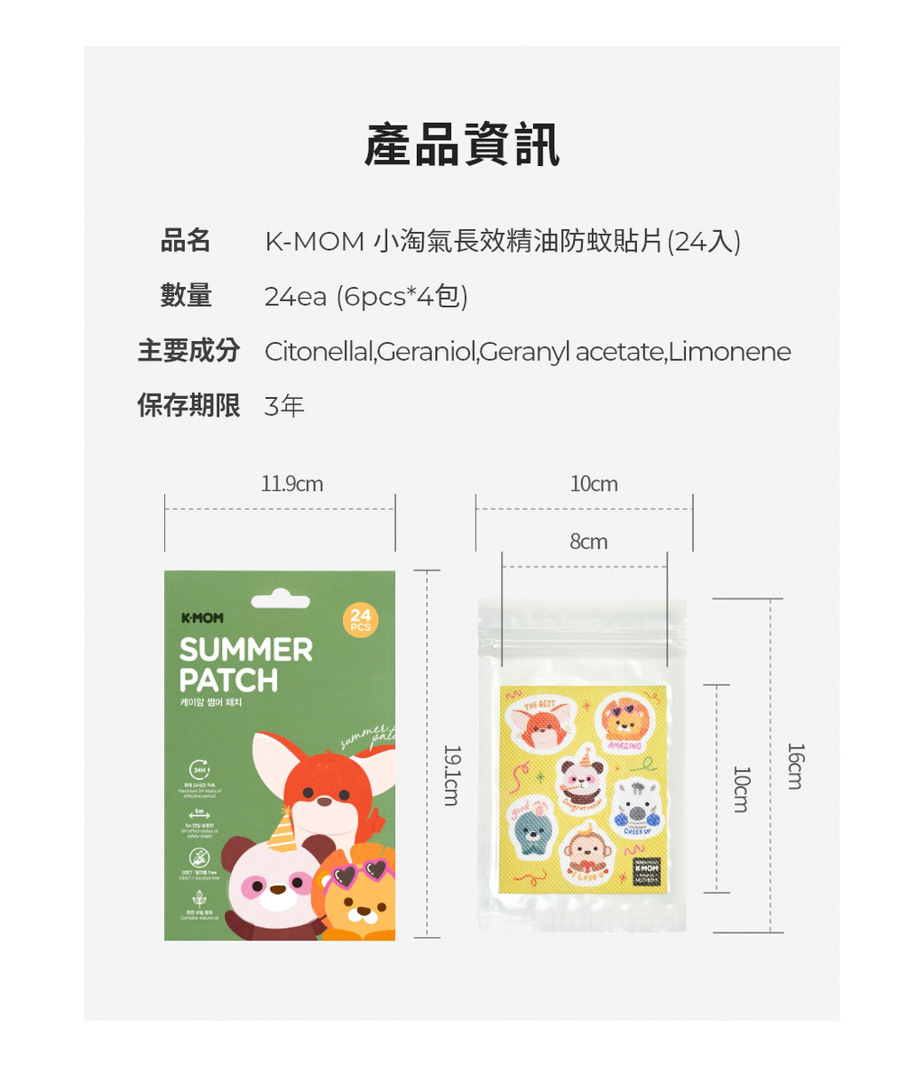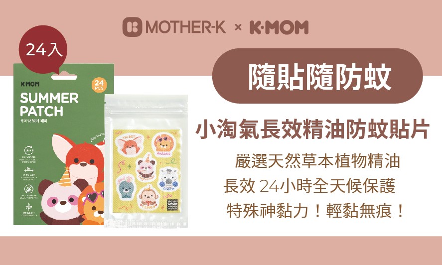 【韓國Mother-K】K-MOM 小淘氣長效精油防蚊貼片(24入) 天然草本植物精油 長效驅蚊貼片 JR995