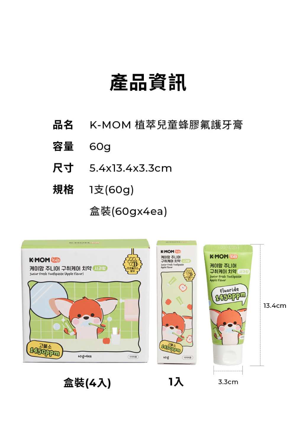 【韓國Mother-K】K-MOM 植萃兒童蜂膠含氟牙膏60g 含氟量1450ppm JR995